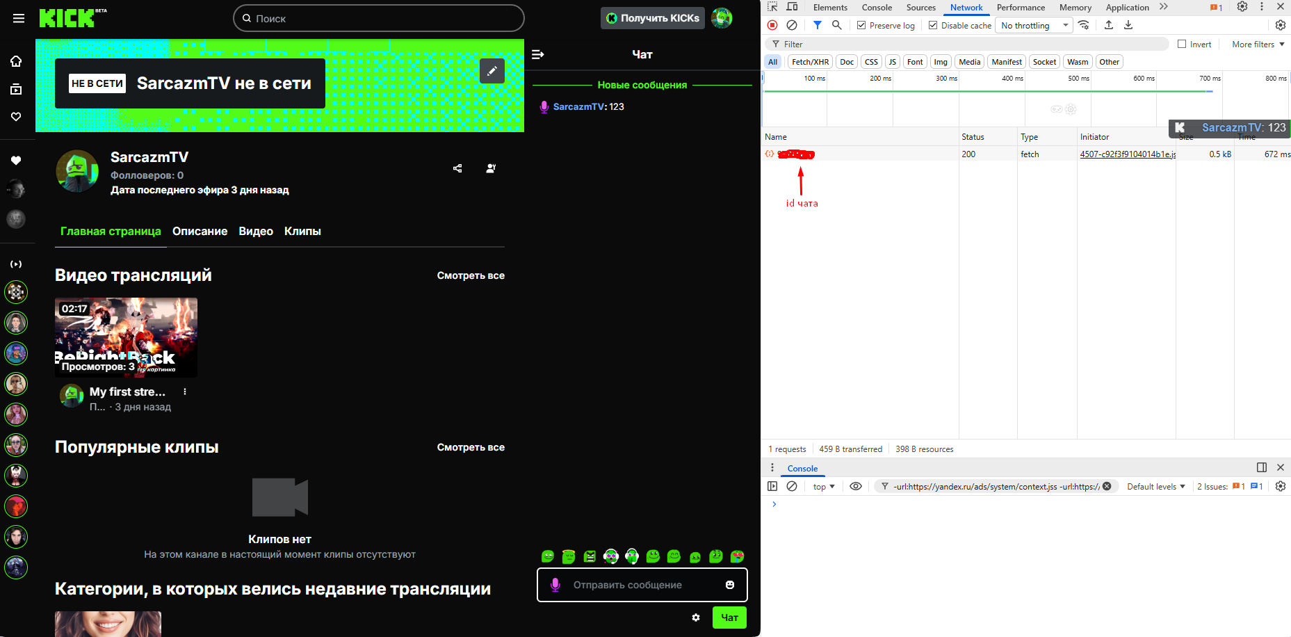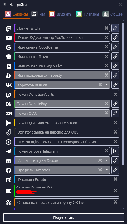 Ввиду того, что недавно стримеров Lineage погнали и с трово, актуальной платформой стал кик. Но с подключением кика не все так просто: если указать свой ник — ничего не произойдет. Нужно указать айди своей комнаты чата. Чтобы его узнать, потребуется открыть инструменты разработчика в браузере.